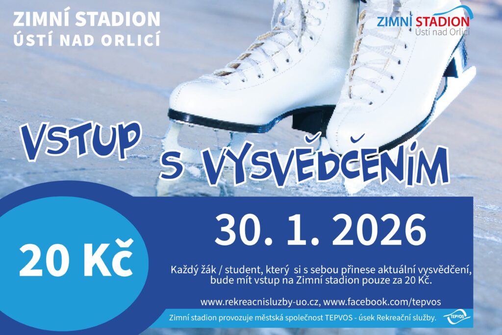 Už víte, jak odměníte své dětičky za pololetní vysvědčení? Máme pro vás super tip. Vyrazte si zabruslit na Zimní stadion. Každý žák/student po předložení aktuálního vysvědčení bude mít vstup jen za 20 Kč.