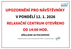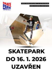 Upozorňujeme návštěvníky, že Skatepark bude do pátku 16. 1. 2025 uzavřen. Děkujeme za pochopení.