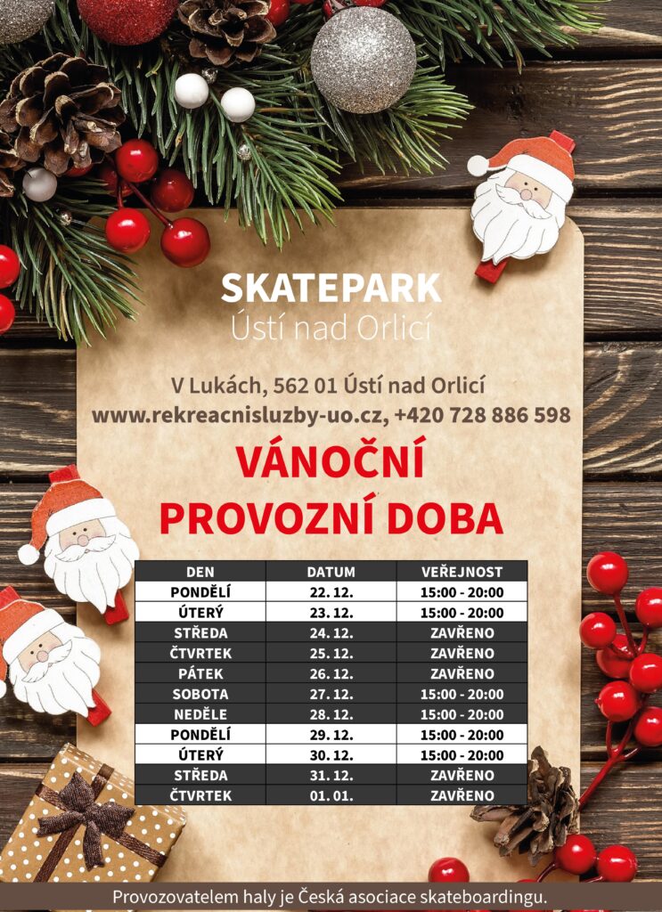 Aktuální informace o provozní době a omezení sledujte na www.skateparkustinadorlici.cz