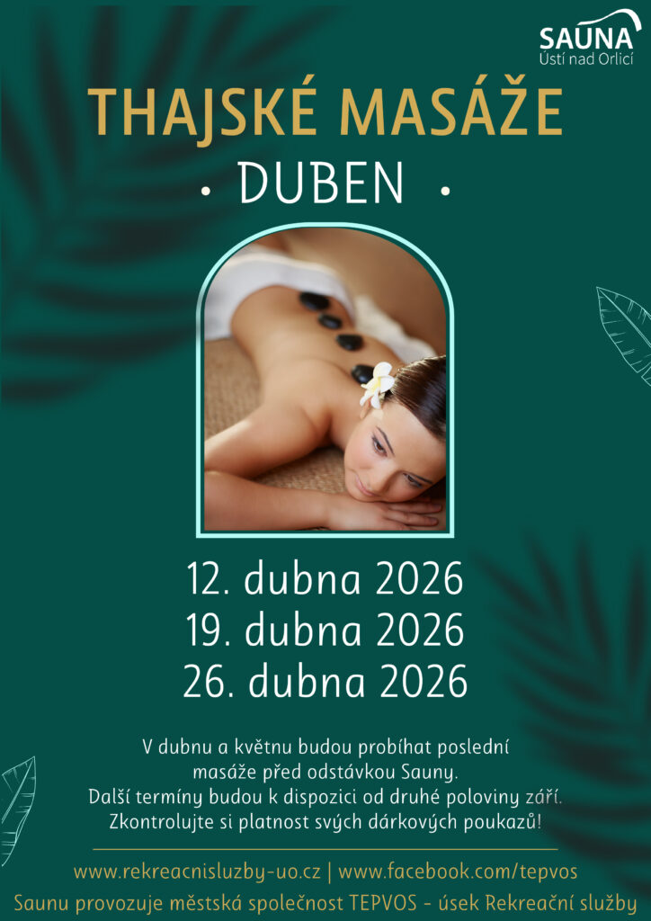 Plánujete si jarní relax? Máme pro vás vypsané dubnové termíny na oblíbené thajské masáže v naší Sauně Ústí nad Orlicí. 🧖‍♀️✨