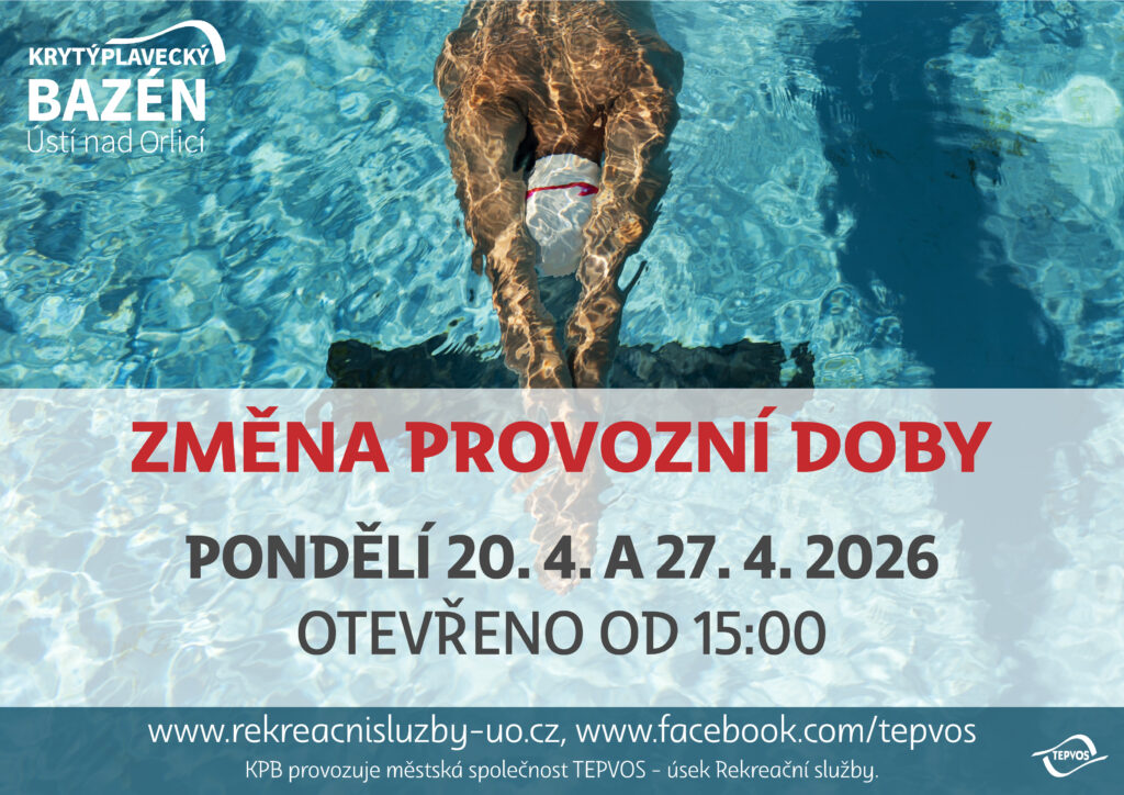 Dne 20. 4. a 27. 4. 2026 bude Krytý plavecký bazén otevřen až od 15:00.